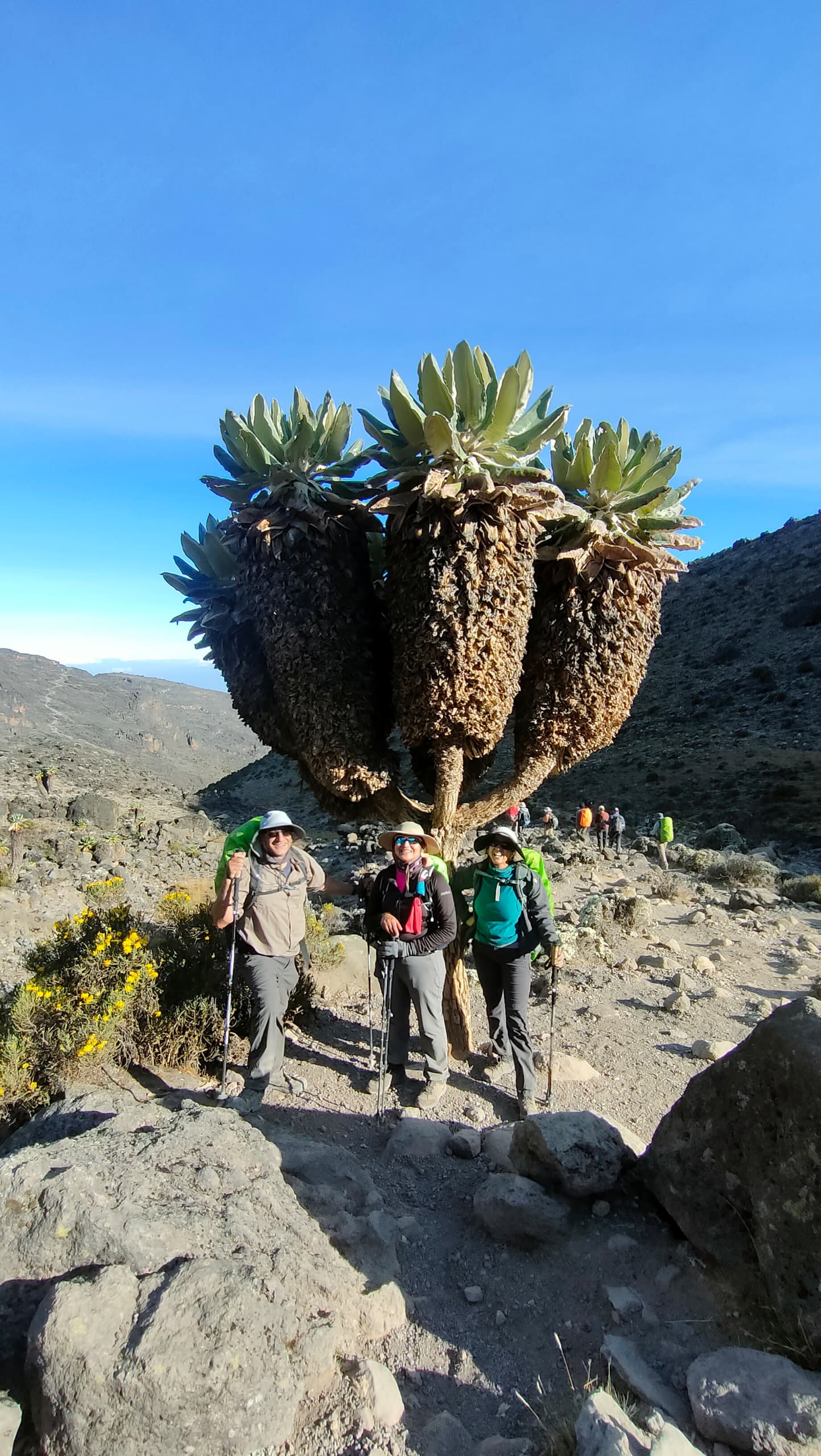 Our climb today will take us steadily up and over expansive ridgelines of high desert to lava Tower. The trek to the base of Lava Tower is about 4 hours(7km). This tower is a 300 ft high volcanic plug. From Lava Tower we begin our steep descent into the Barranco valley passing large flowering plants which is actually look like trees, Scenecios. This is good practice for our descent from the summit in few days’ time and will take around 2 hours (3km). Although we will end our day at almost the same elevation as we started, today is very important for acclimatization and will help our body prepare for summit night. Barranco camp is in a beautiful sheltered valley below the imposing Barranco wall.